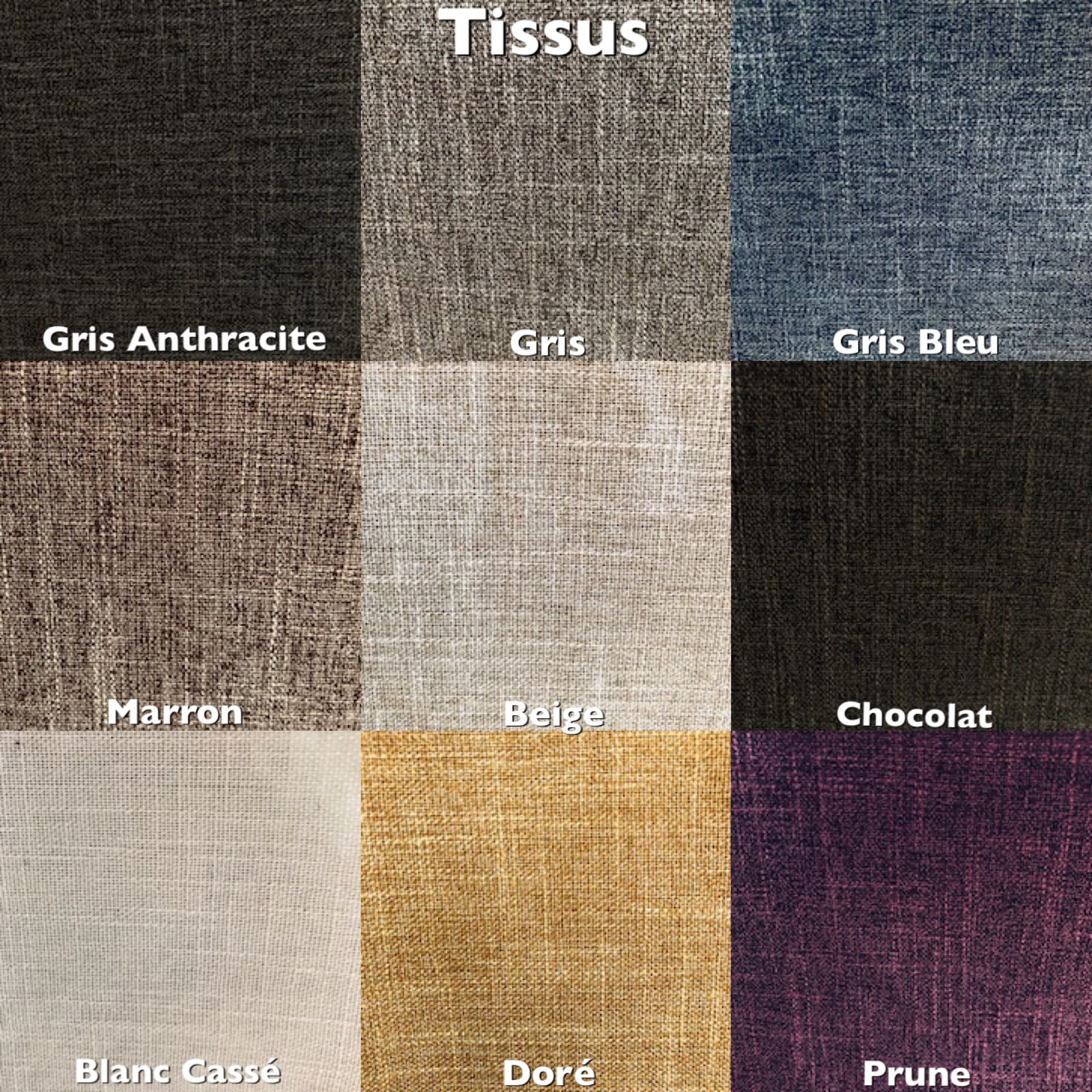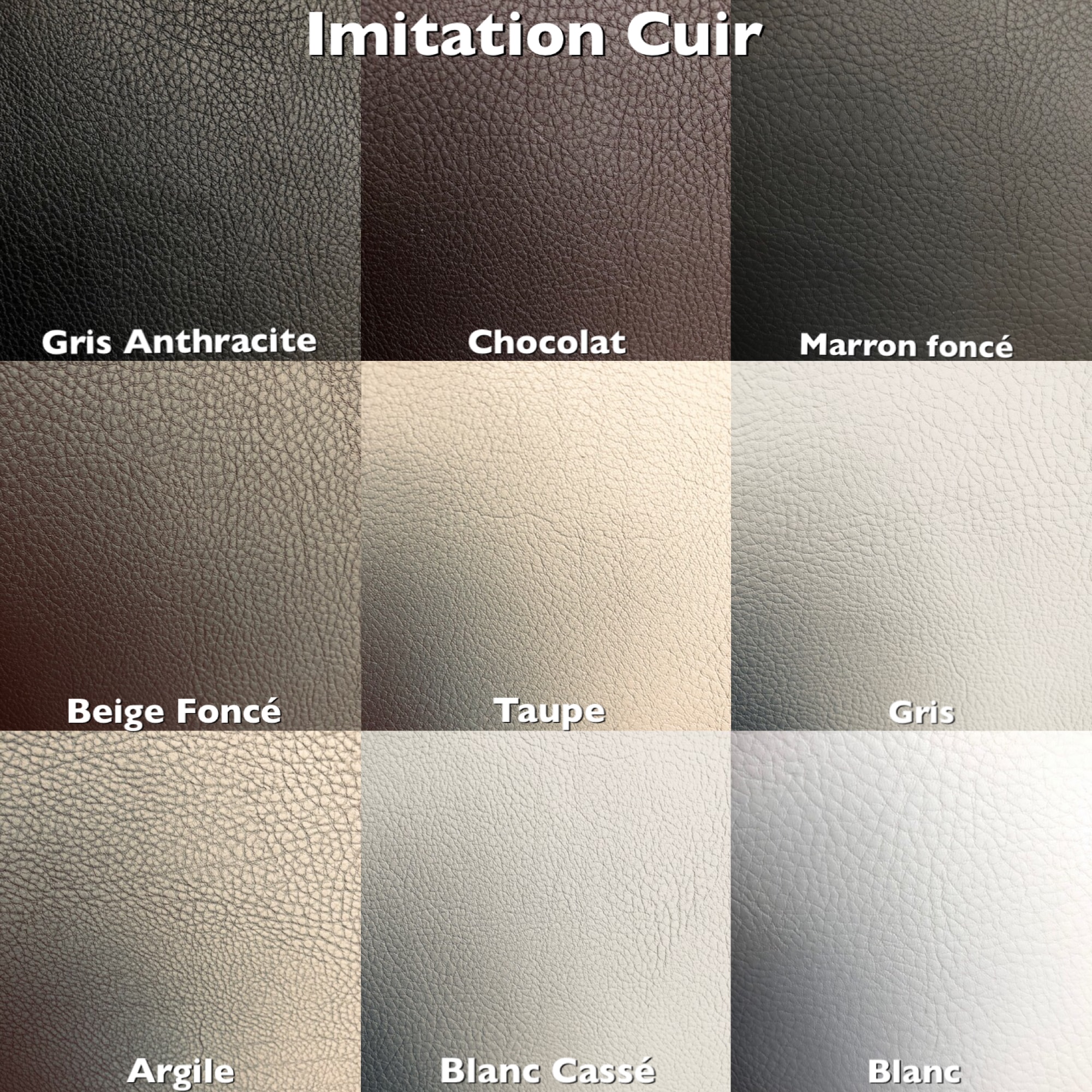 Gris Anthracite, Gris, Gris Bleu, Marron, Beige, Chocolat, Blanc Cassé, Doré, Prune, Cuir Gris Anthracite, Cuir Chocolat, Cuir Marron Foncé, Cuir Beige Foncé, Cuir Taupe, Cuir Gris, Cuir Argile, Cuir blanc Cassé, Cuir Blanc